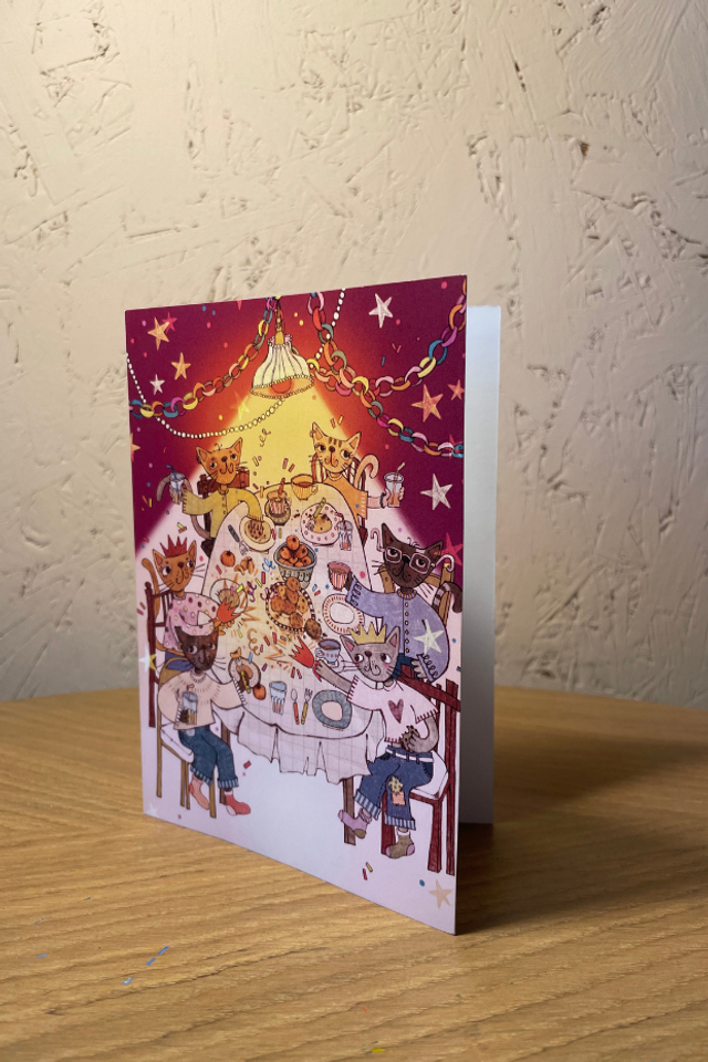 An exclusive cat-themed festive card illustrated by artist Ana Andriuskina to raise funds for the London LGBTQ+ Community Centre.